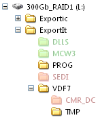 The folders shown as “greened out” are legacies from past versions of the application. They are no longer used, or needed, but may be present in installations where Export-It has been in use for an extended time. The ghostly red folders are only present on a platform which is capable of providing Secure EDI [SEDI] communications, they would not be present on most platforms, but they must be present on at least one machine in the installation topology.