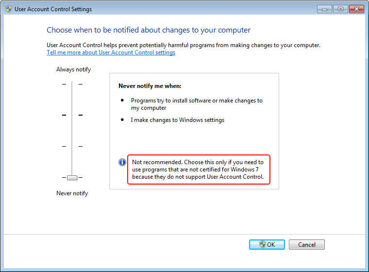 The introduction of the User Access Control [UAC] security subsystem in Windows Vista (and enhanced in Windows 7) was accompanied by new Application Program Interfaces [APIs] which did not exist in earlier versions of Windows®. Microsoft views this as a positive because it “obsoletes” earlier software, generating upgrade revenue, and discourages competitors by forcing the cost of software modifications on them. This tactic also influences software vendors to stop supporting Windows® versions from which Microsoft no longer receives income. For example, any program which interacts with UAC is excluded from running on Windows 2003, Windows XP or earlier Windows versions (because UAC does not exist in them).